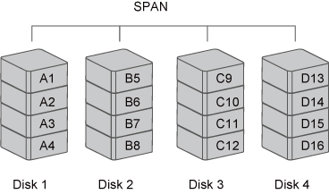 Spanning provides another maximum capacity solution, which some call it as "Large". Spanning combines multiple hard drives into a single logical unit. Unlike Striping, Spanning writes data to the first physical drive until it reaches full capacity. When the first disk reaches full capacity, data is written to the second physical disk. Spanning provides the maximum possible storage capacity, but does not increase performance.