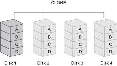CLONE consists of at least two drives storing duplicate copies of the same data. In this mode, the data is simultaneously written to two or more disks. Thus, the storage capacity of the disk array is limited to the size of the smallest disk.